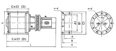 | A1×A | B1×B | C1×C | DN | D | D1 | H | L | n-d | 傳動功率型號 | 功率KW | 卸灰能力 m3/h | 重量kg |